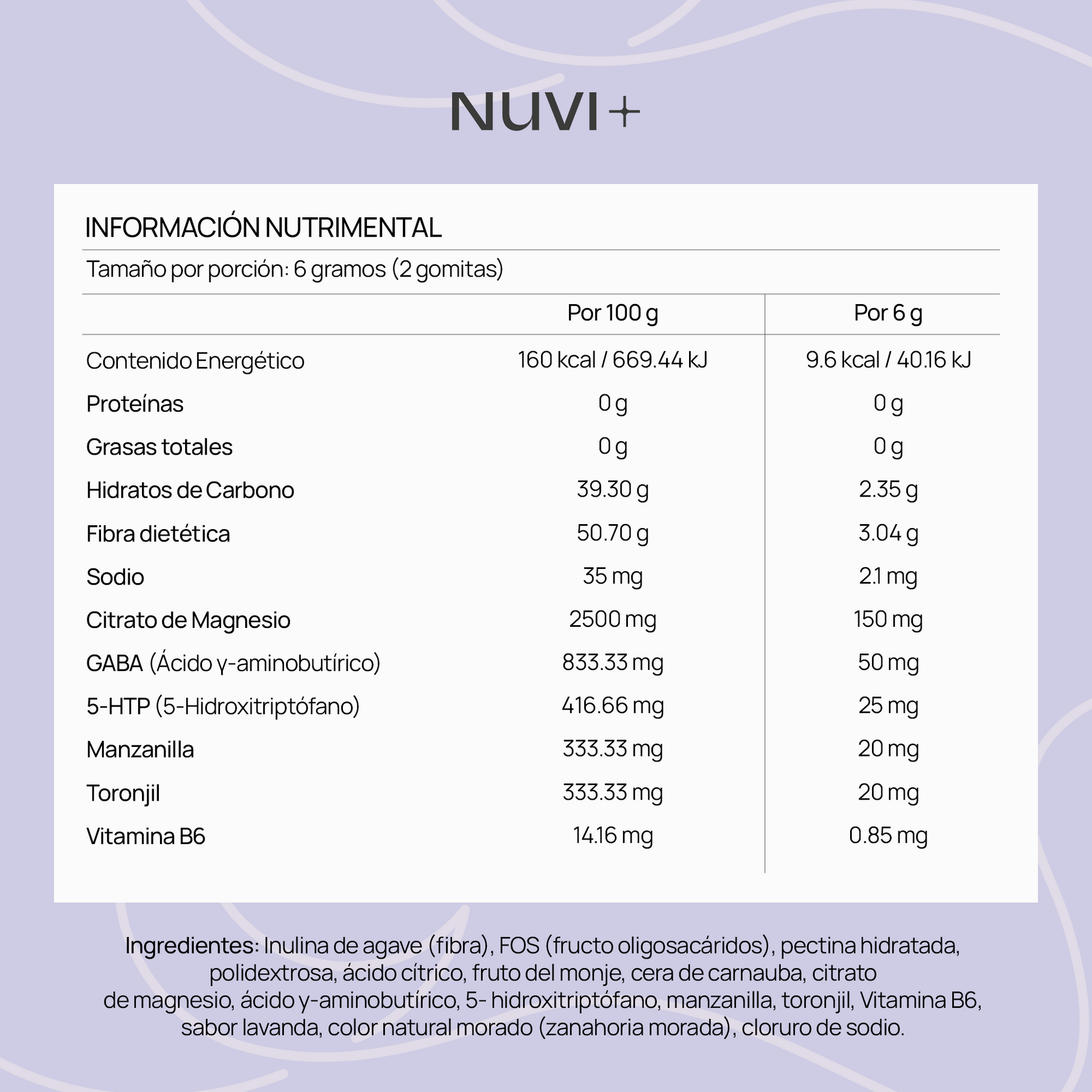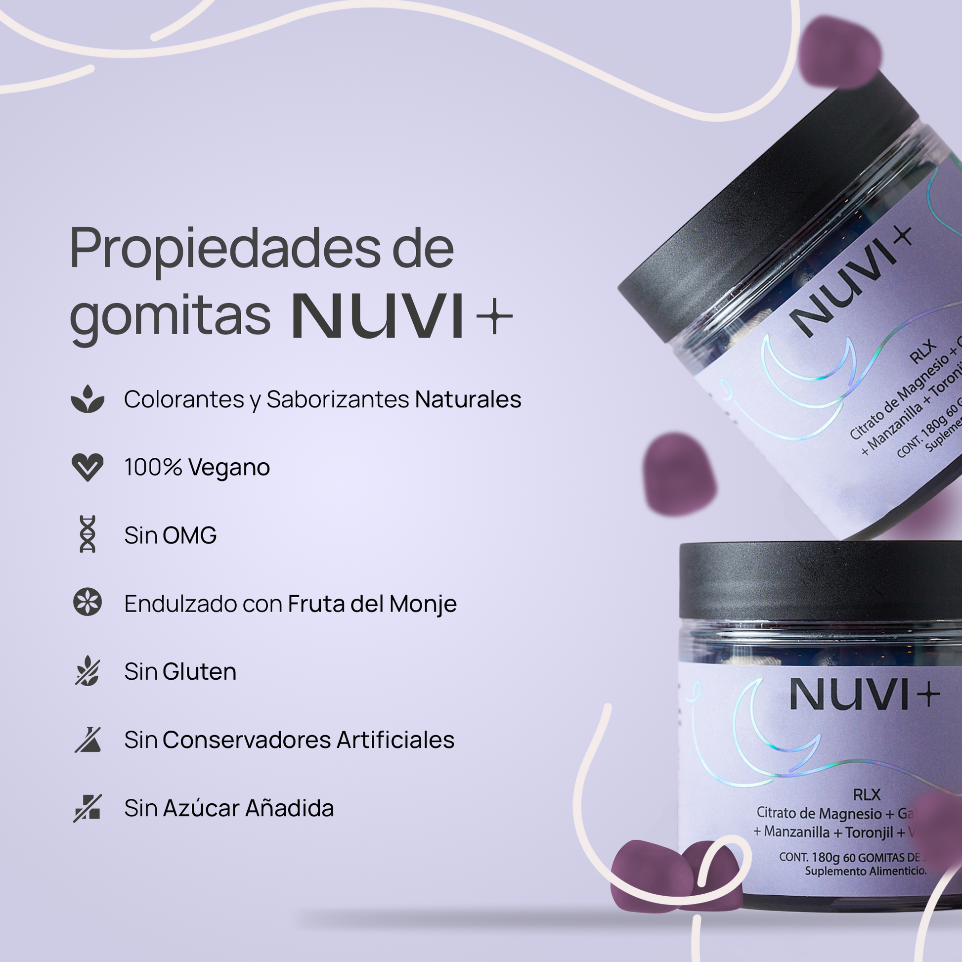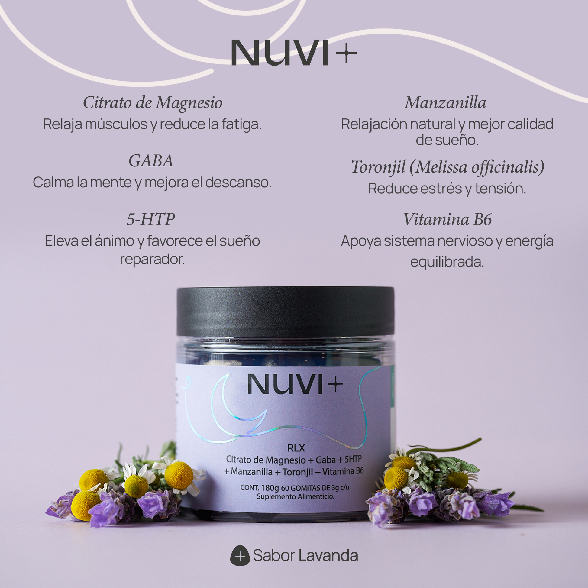 - 60 gomitas de 3 gramos c/u sabor lavanda.